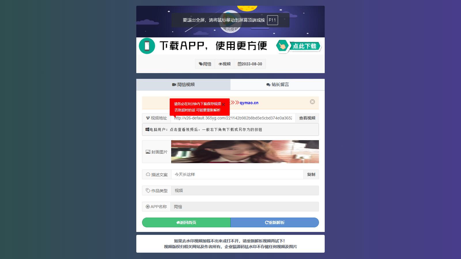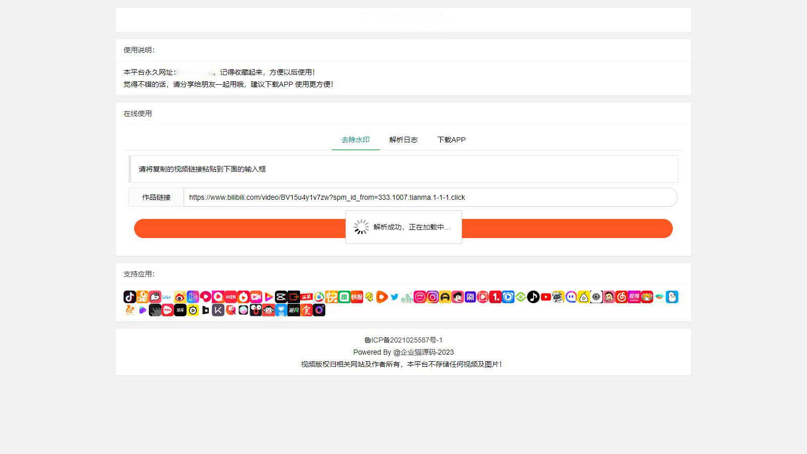 【站长亲测】支持几十种平台抖音快手小红书全新去水印系统网站源码下载