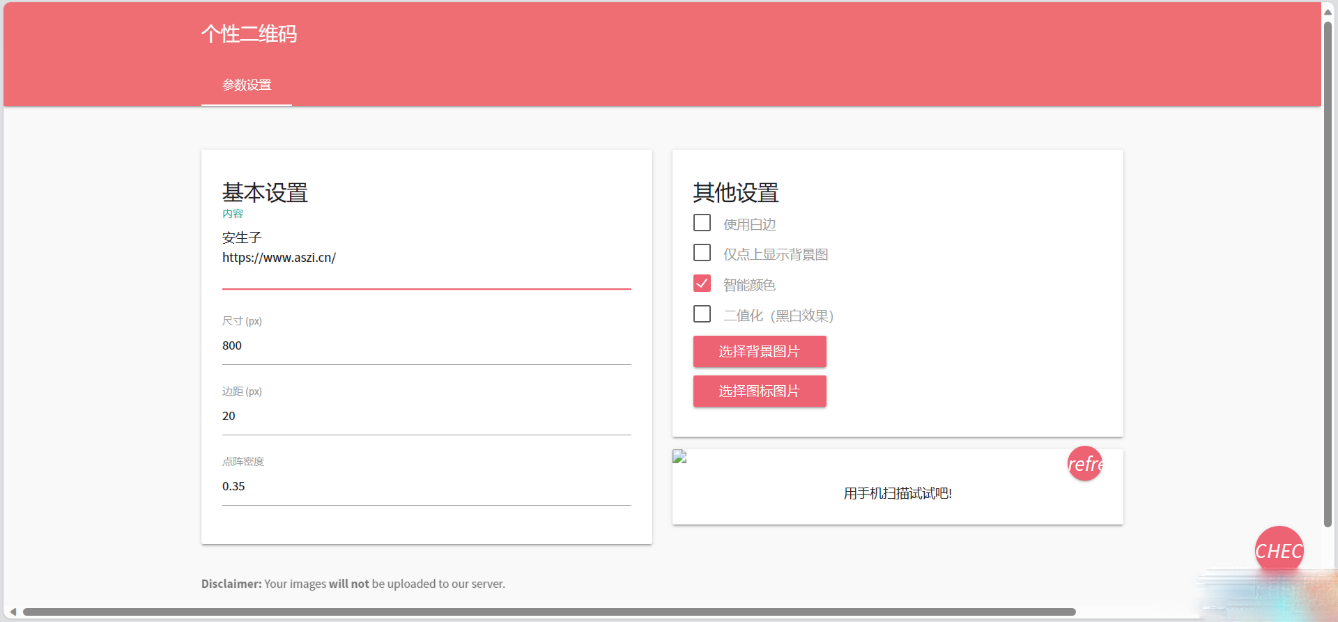 个性化二维码生成网页源码下载,可自定义背景和图标功能