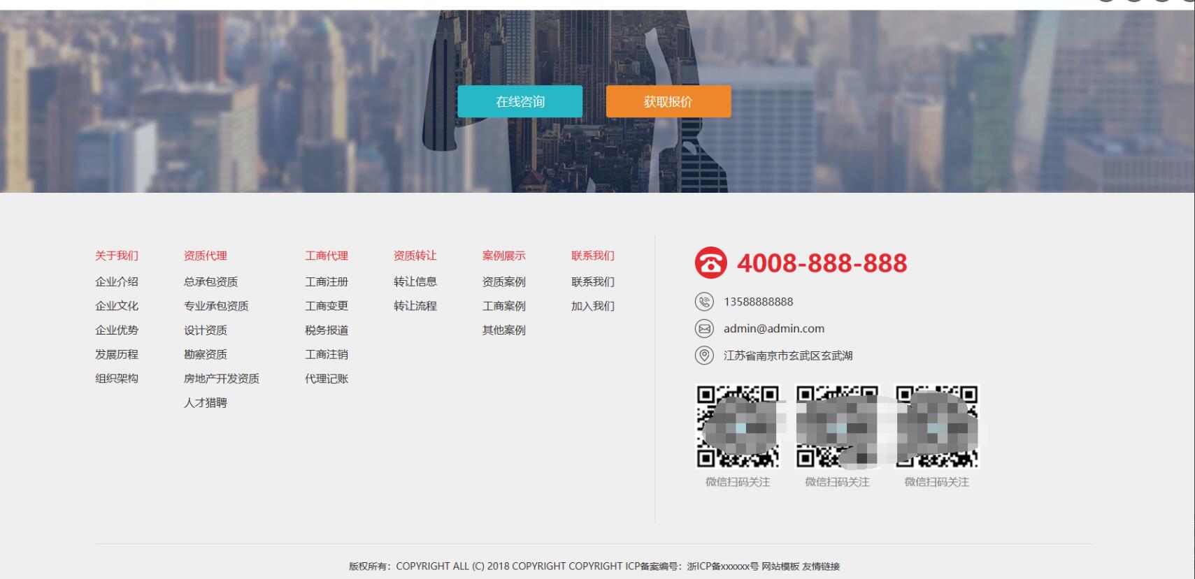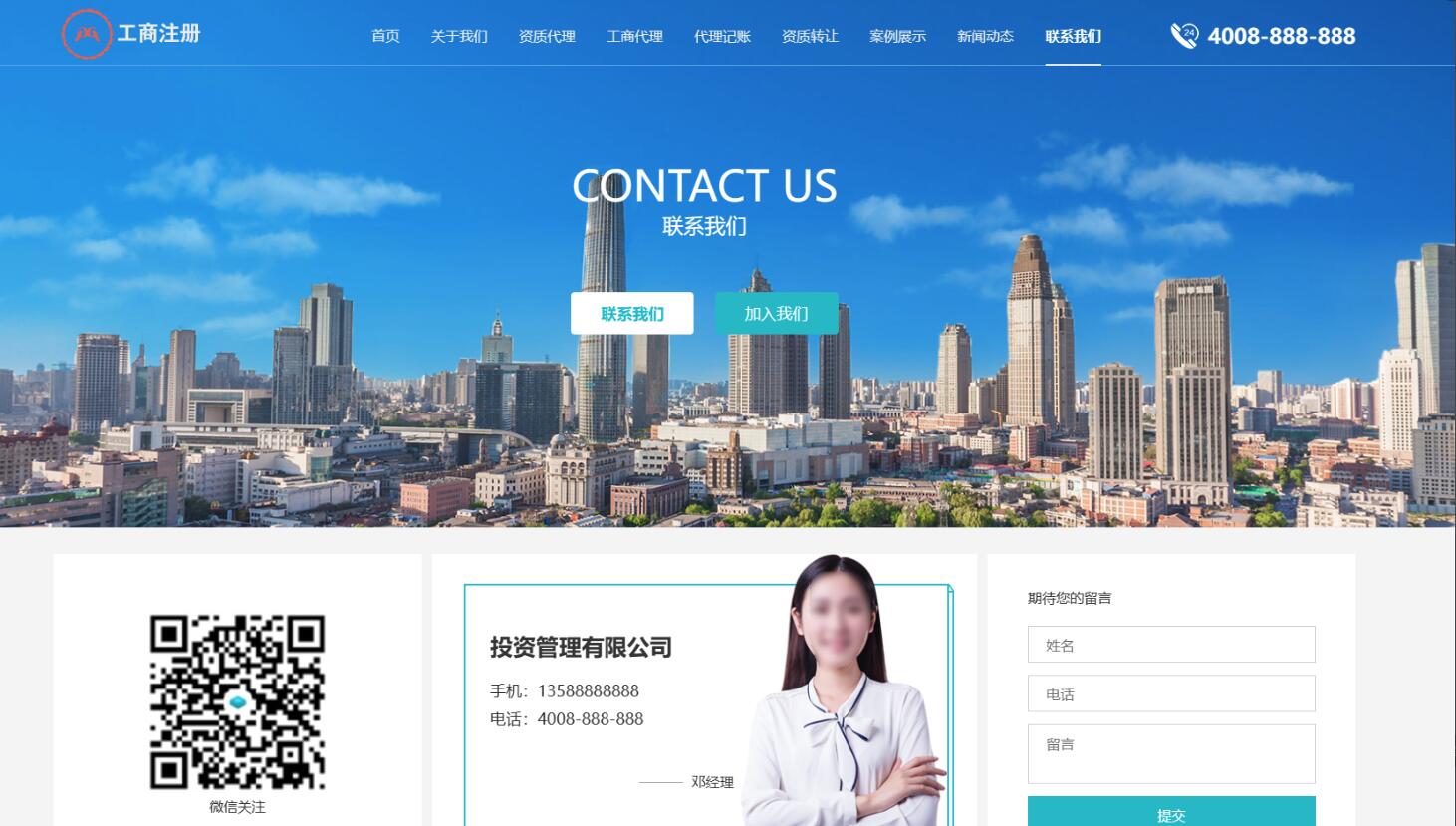 该工商记账、公司注册、企业资质业务办理公司网站响应式模板是做好企业官网所需模板中完美的解决方案,配备大量的定制选项和美观的设计,适用于各类工商记账、公司注册、企业资质业务办理等相关企业使用。