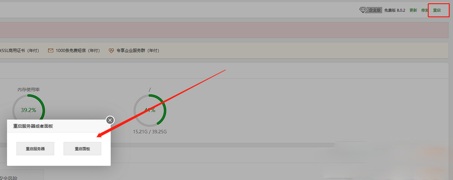 3. 使用 SSH 链接到你的服务器,输入 bt 命令,然后输入 9 清除面板缓存或者右上角重启面板也可以。