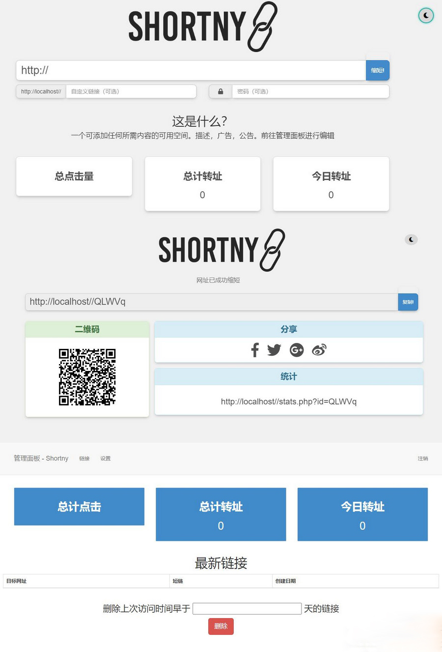 支持黑夜模式简洁PHP短网址短链接生成源码
