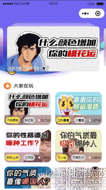 自由者源码平台 » 全新UI趣味心理测评微信源码小程序源码下载 自带流量主,免服务器即可搭建
