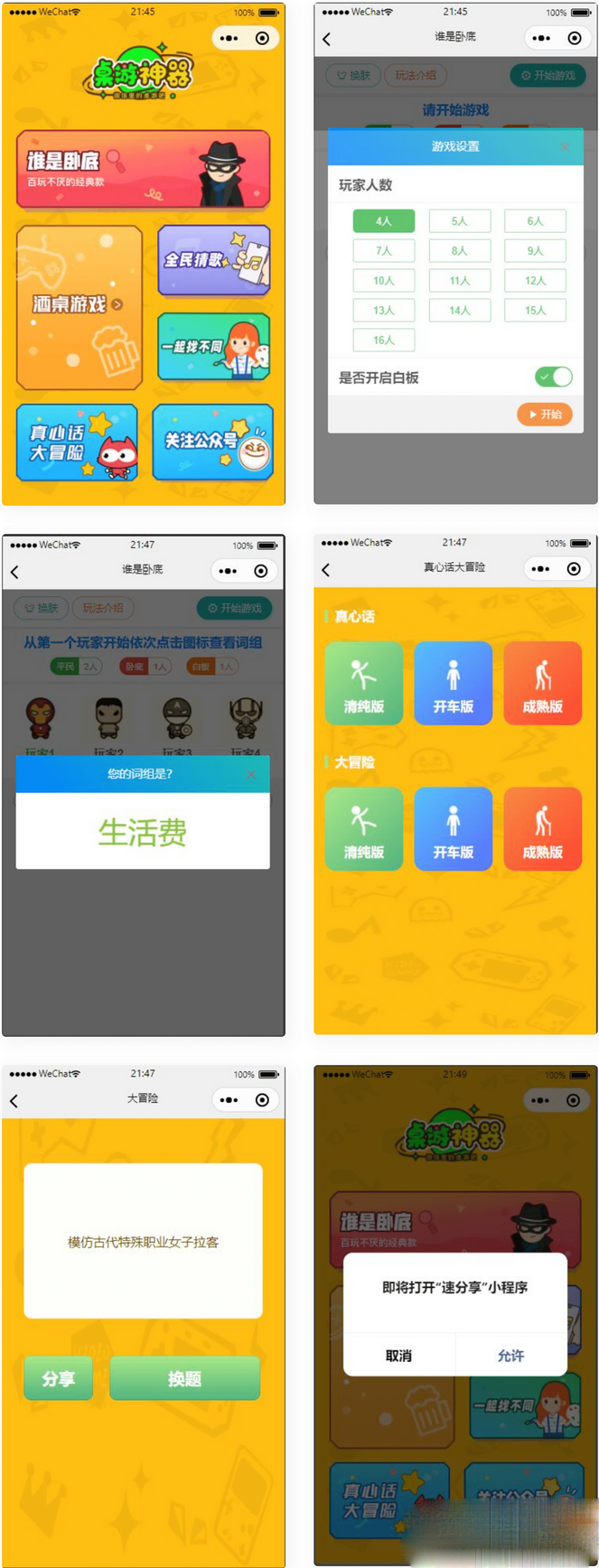 在开发工具测试了下,能搭建出来,功能在7/25测试时正常使用 UI非常漂亮。看着也比较舒服,游戏重要有 1.谁是卧底 2.真心话大冒险