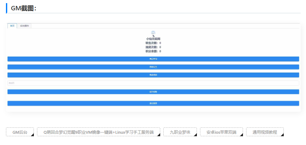 自由者源码平台 » 九职业梦诛_Q萌回合梦幻觉醒9职业VM镜像一键端+Linux学习手工服务端_安卓IOS苹果双端_GM后台(带视频教程)