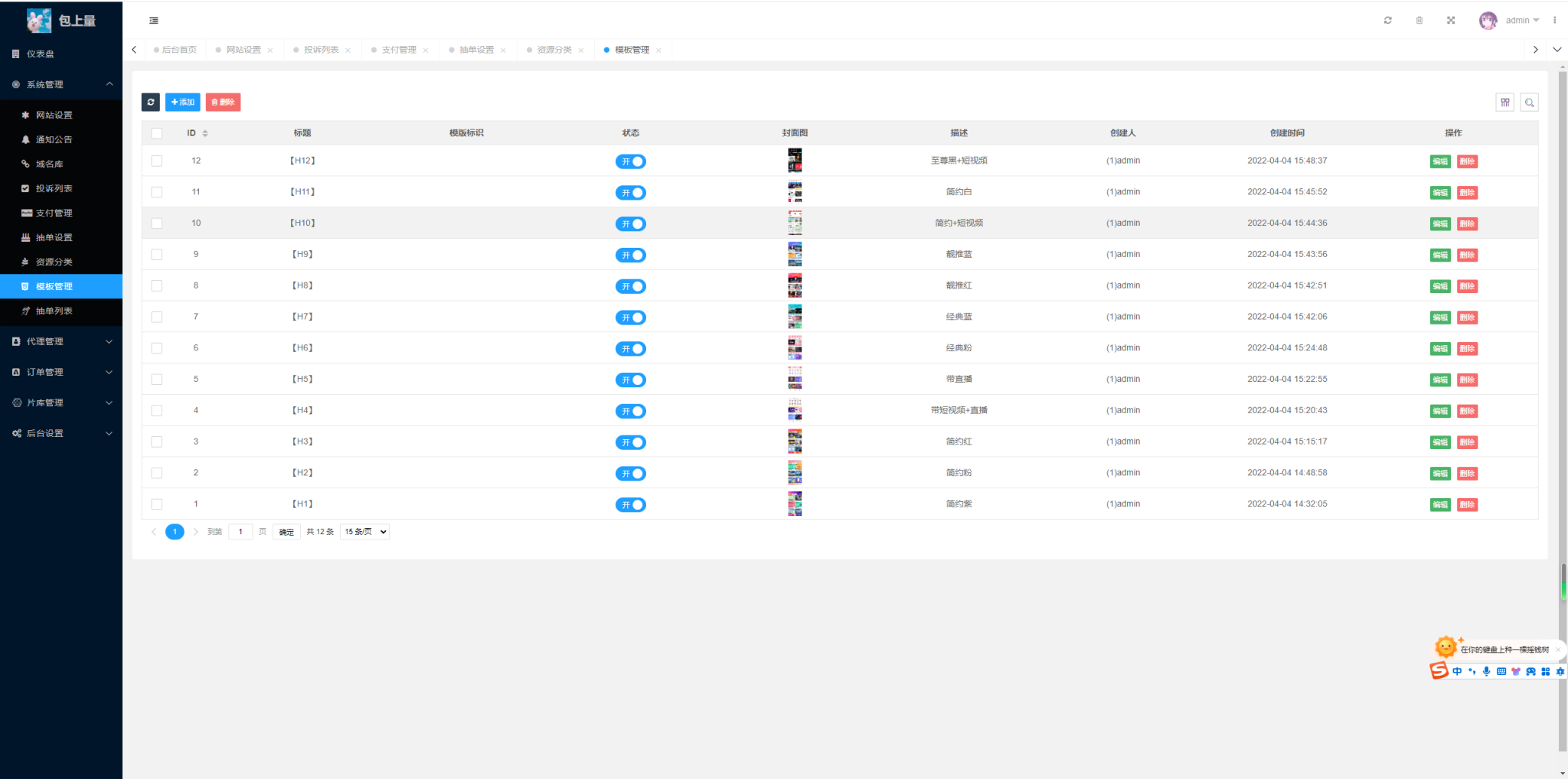 公告管理,您可以自定义公告内容通知代理可发布图片、视频、富文本等等如:教代理使用代理后台,告诉代理注意事项等等,(代理每次登录后台自动弹窗公告一次)后台可自定义模板是否开启使用,模板封面图标题等等,前端更有全随机标题防止被恶意针对全随机防洪,全新短视频裂变推广等功能提示催促用户支付提升支付率等等。