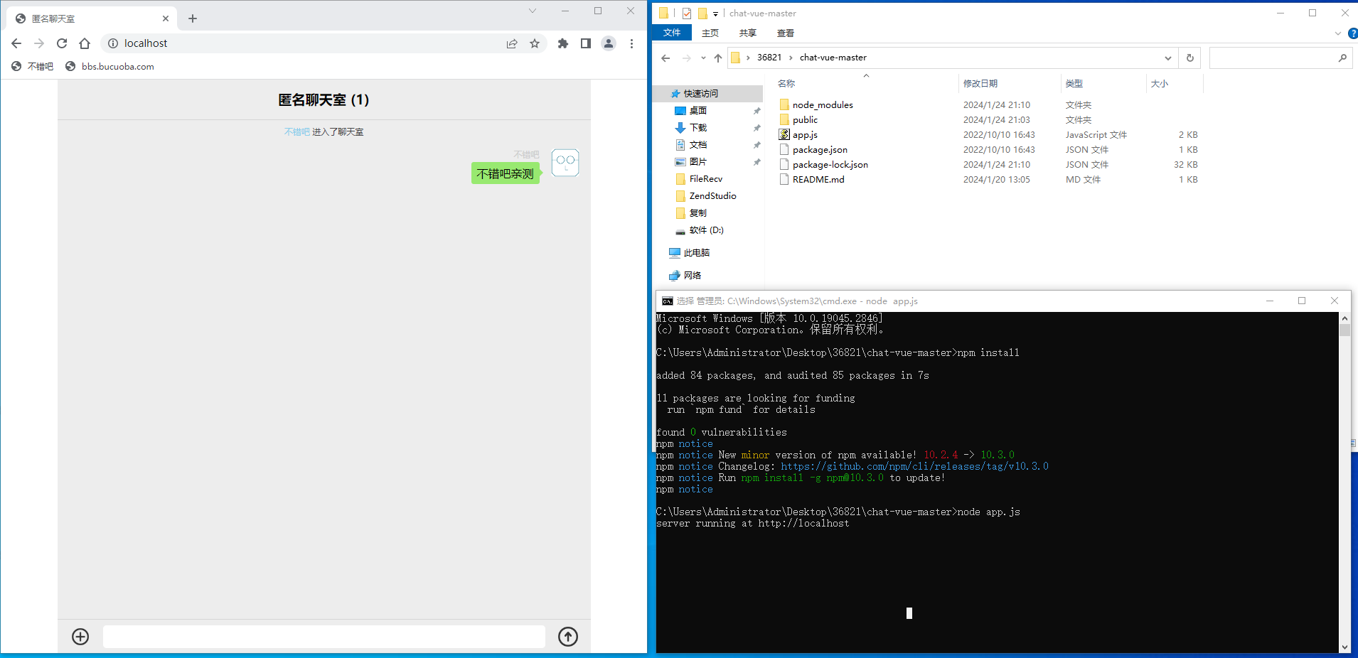 安装依赖项:npm install启动:node app.js运行:直接访问域名即可进入聊天室